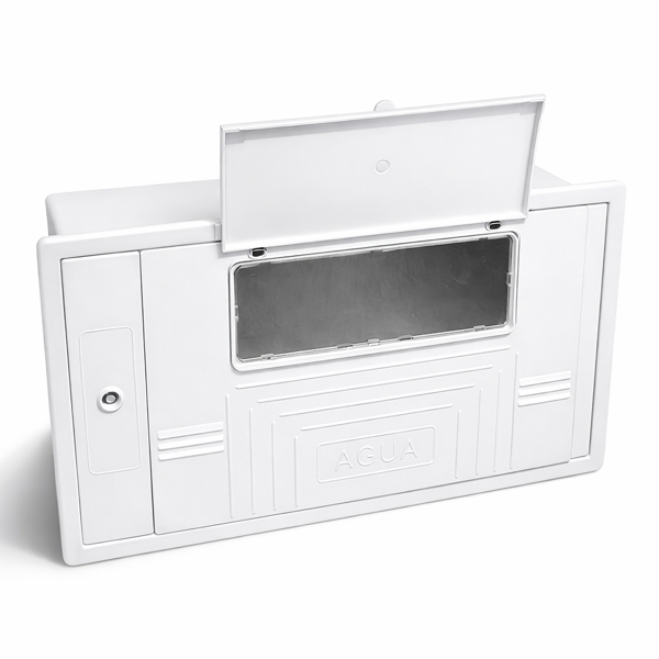 * Caixa em PVC para proteção e instalação de contador de água, garantindo segurança e fácil acesso para leitura e manutenção.