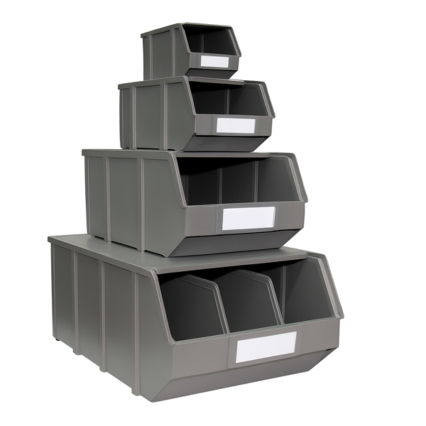 * Permitem empilhamento seguro, têm boa capacidade interna e espaço para identificação frontal.