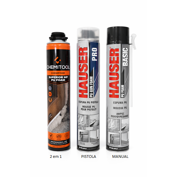 * Espuma de poliuretano expansiva indicada para isolamento, enchimento e fixação em trabalhos de construção e bricolage.