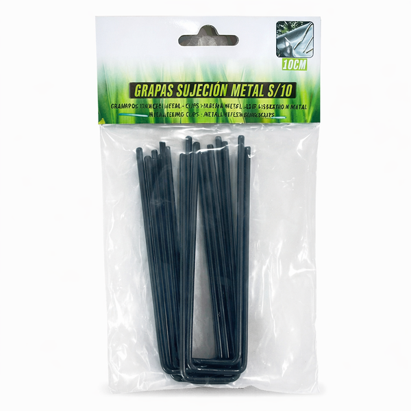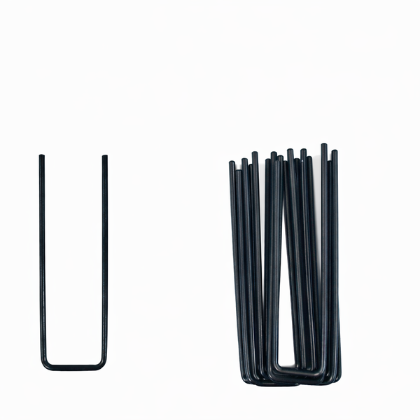 * Grampo metálico em formato U, ideal para fixação segura de telas de jardim, redes anti-ervas, mangueiras de rega gota-a-gota e outros materiais ao solo.