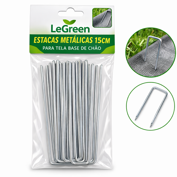 * A Estaca Metálica de 15 cm é ideal para fixação segura de telas base de chão, telas anti-ervas ou geotêxteis em jardins, hortas e trabalhos de paisagismo.