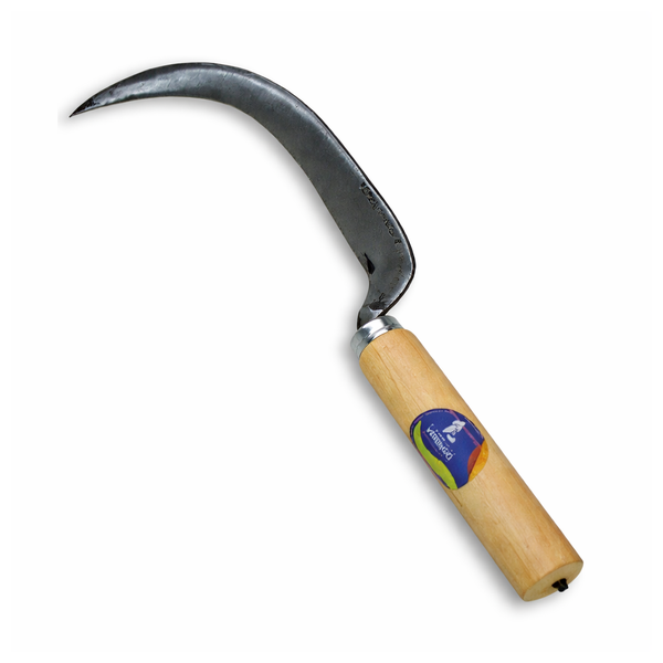 * Foice tradicional com lâmina curva em aço de elevada resistência, indicada para trabalhos agrícolas exigentes.