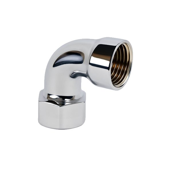 * Joelho metálico cromado, indicado para instalações de esquentadores e sistemas de água quente.