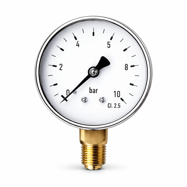 * Escala até 10 bar, leitura clara e ligação metálica resistente para maior durabilidade.