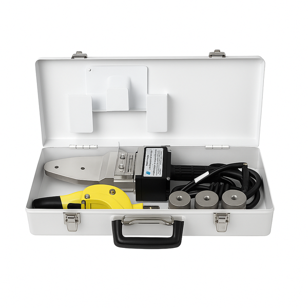 * Máquina de soldar tubos PPR/PVC por termofusão, fornecida em mala metálica com acessórios e bocas de vários diâmetros.