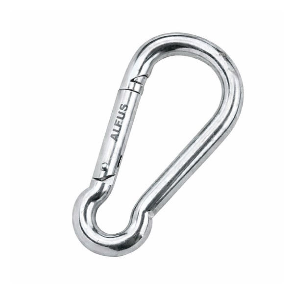 * Mosquetão em aço inoxidável tipo bombeiro, indicado para fixação rápida e ligação de cabos, correntes e acessórios.