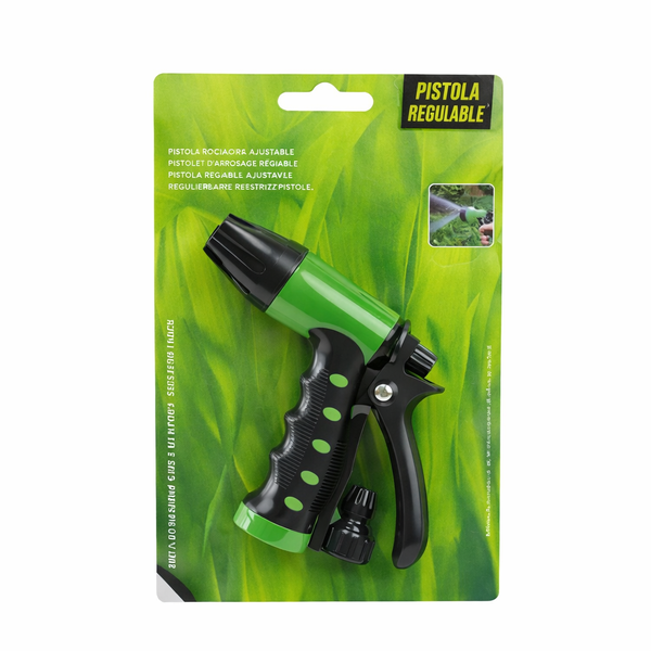 * Pistola de rega ajustável, indicada para diferentes tipos de rega em jardins e exteriores.