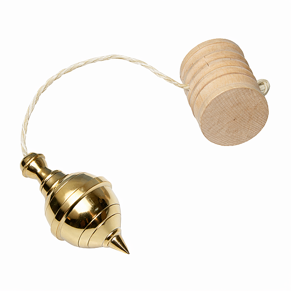 * Prumo em latão maciço, formato tipo peão, indicado para verificação e marcação de alinhamentos verticais em trabalhos de construção.