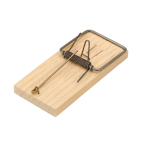 * Armadilha tradicional em madeira com mola metálica de alta tensão.