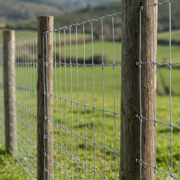 * Rede com um entrelaçado de arames horizontais e verticais, com espaçamentos entre os arames que são mais curtos na base da vedação e vão aumentando progressivamente até ao topo, prevenindo a passagem de animais de pequeno porte.