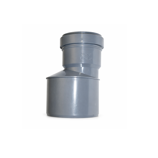 * Peça de redução em PVC conforme norma DIN, utilizada em sistemas de drenagem e saneamento para ligação entre tubos de diferentes diâmetros.