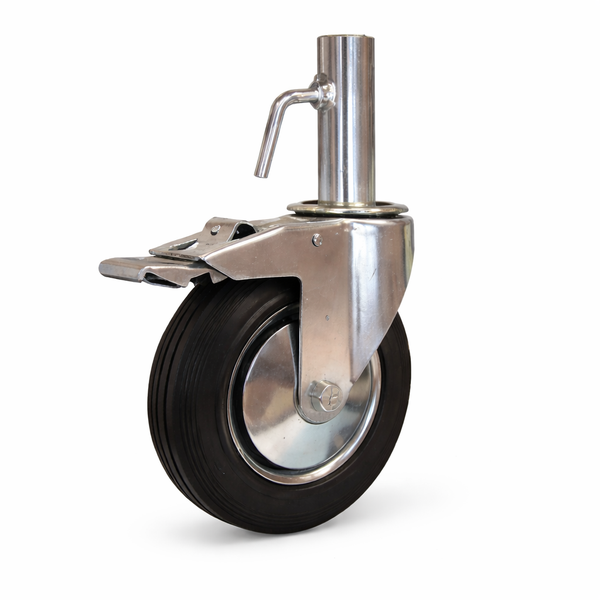 * Rodízio giratório com travão, ideal para andaimes, proporcionando mobilidade fácil e bloqueio seguro durante a utilização.