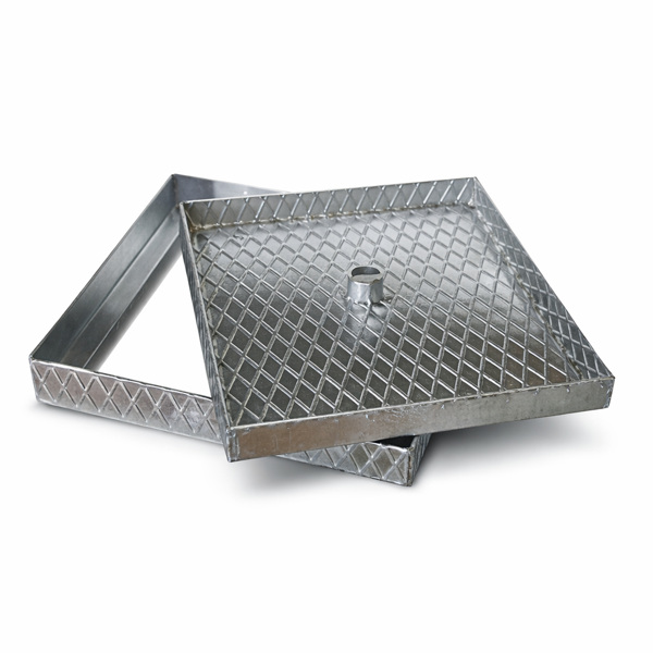 * Tampa metálica rebaixada fabricada em chapa xadrez, concebida para acesso e proteção de caixas técnicas, sistemas de drenagem ou infraestruturas subterrâneas.