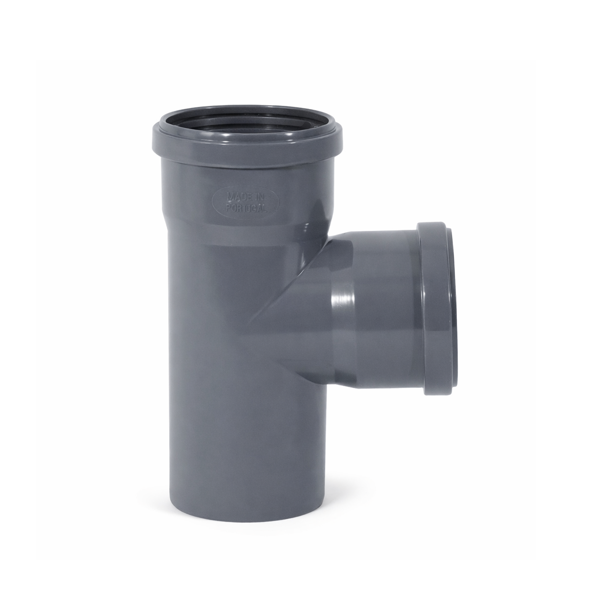 * Acessório de ligação em PVC para derivação a 90°, equipado com junta O-ring que garante vedação eficaz e instalação rápida sem necessidade de colagem.