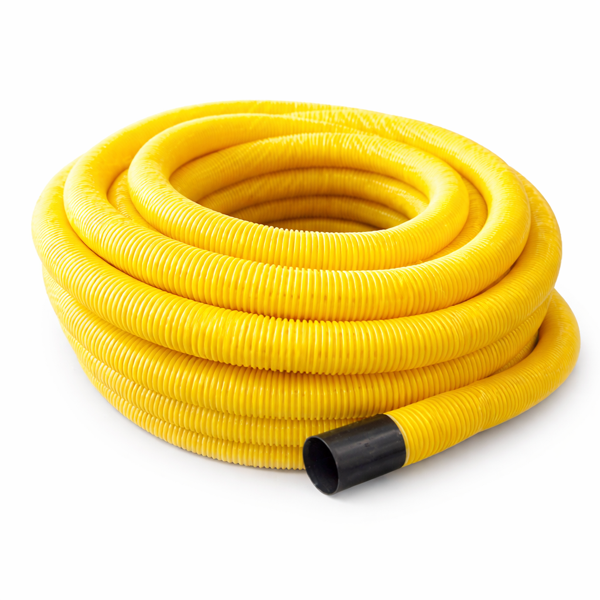 * Tubo de drenagem em material plástico flexível, fornecido em rolo de 50 metros, ideal para sistemas de escoamento de águas pluviais e drenagem de terrenos.